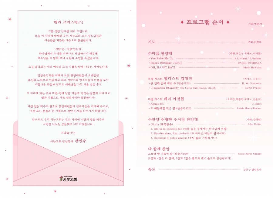 2025³â 12¿ù 14ÀÏ(ÁÖÀÏ) '¼ºÅº À½¾Çȸ' °¡ ÀºÇý °¡¿îµ¥ Àß ¸¶ÃƽÀ´Ï´Ù.